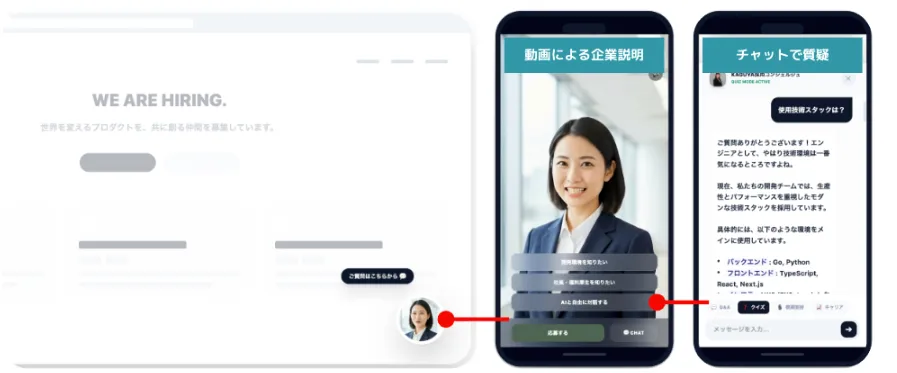 RAG技術搭載のAIは、常に求職者の疑問に即答します。「残業の実態は?」や「リモートワークの環境はどうか?」など、リアルな声に迅速に対応することで、応募者の不安を軽減し、内定辞退のリスクを減少させることが期待されます。