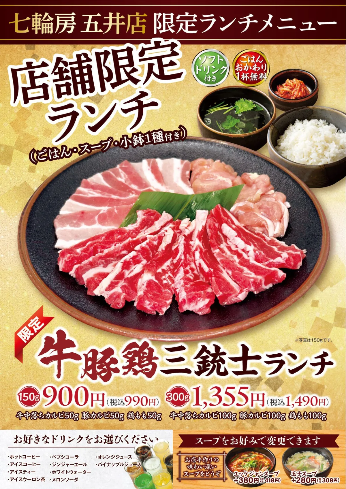この秋に登場するランチメニューでは、牛中落カルビ、豚カルビ、鶏もも肉の3種類が楽しめる特別ランチをご用意。各肉がそれぞれ50gまたは100gで提供されるので、食べ応え十分です。また、全て炭火焼きで調理されており、香ばしさと肉の旨味が引き立っています。