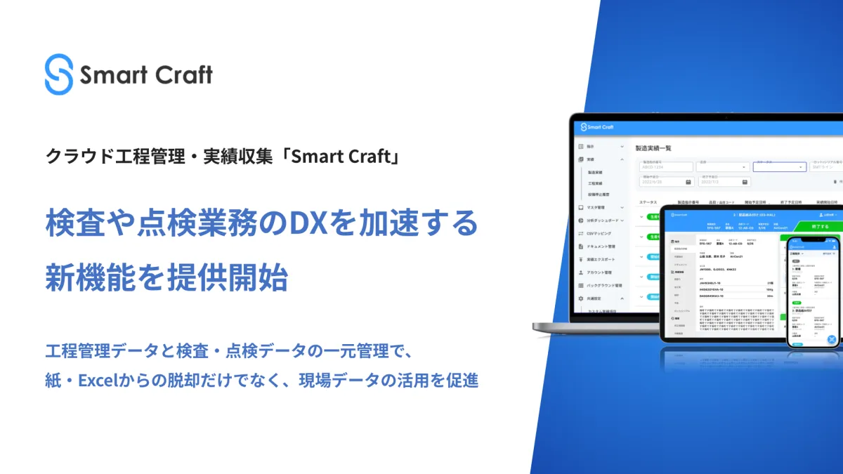 株式会社Smart Craft(渋谷区)は、クラウド工程管理サービス「Smart Craft」に新しい機能を追加し、商品の検査や点検業務をデジタル化することを発表しました。この新機能は、従来は紙やExcelで行われていた検査業務を、システム上で一元管理できるようにするものです。