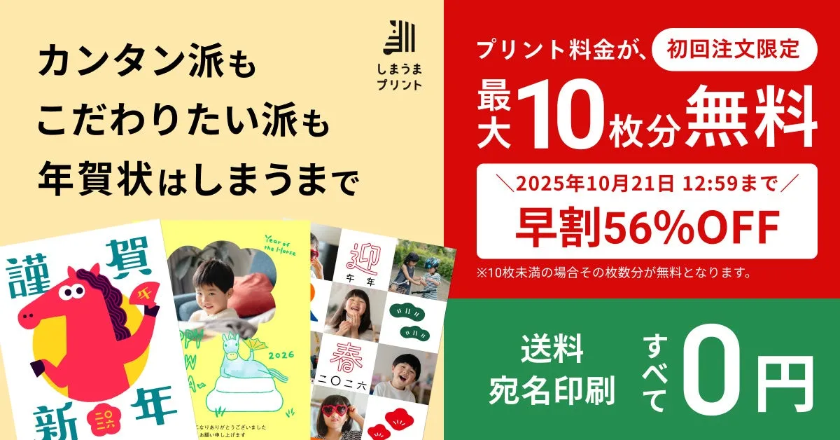 株式会社しまうまプリントは、2025年10月1日から「しまうま年賀状2026」の受付を開始しました。このサービスを利用することで、PCやスマートフォンを通じて簡単に年賀状の印刷が可能になります。受付開始を記念して、特別なキャンペーンも実施中です!