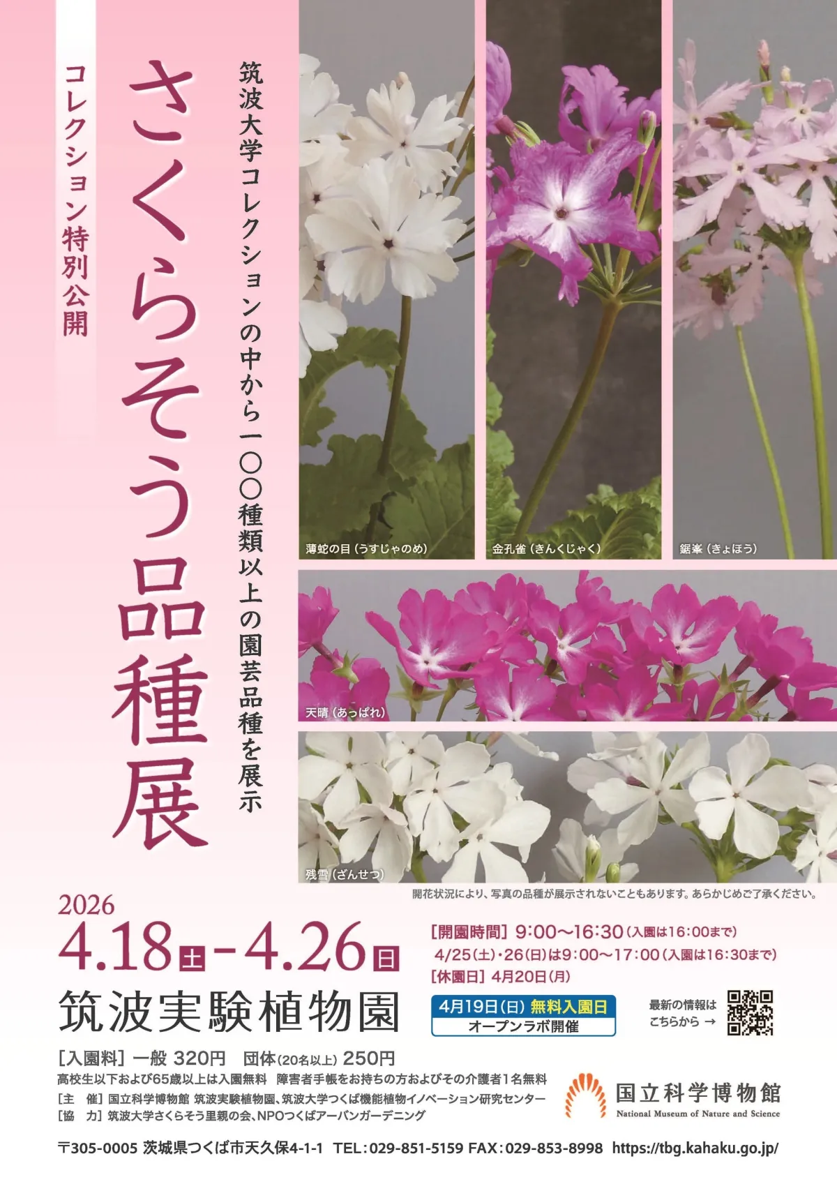 2026年4月18日(土)から4月26日(日)まで、国立科学博物館 筑波実験植物園で、「さくらそう品種展」が特別公開されます。日本の春を象徴するサクラソウをテーマにしたこの展示では、約100種類以上の園芸品種が展示され、さまざまな色、形、姿を楽しむことができます。