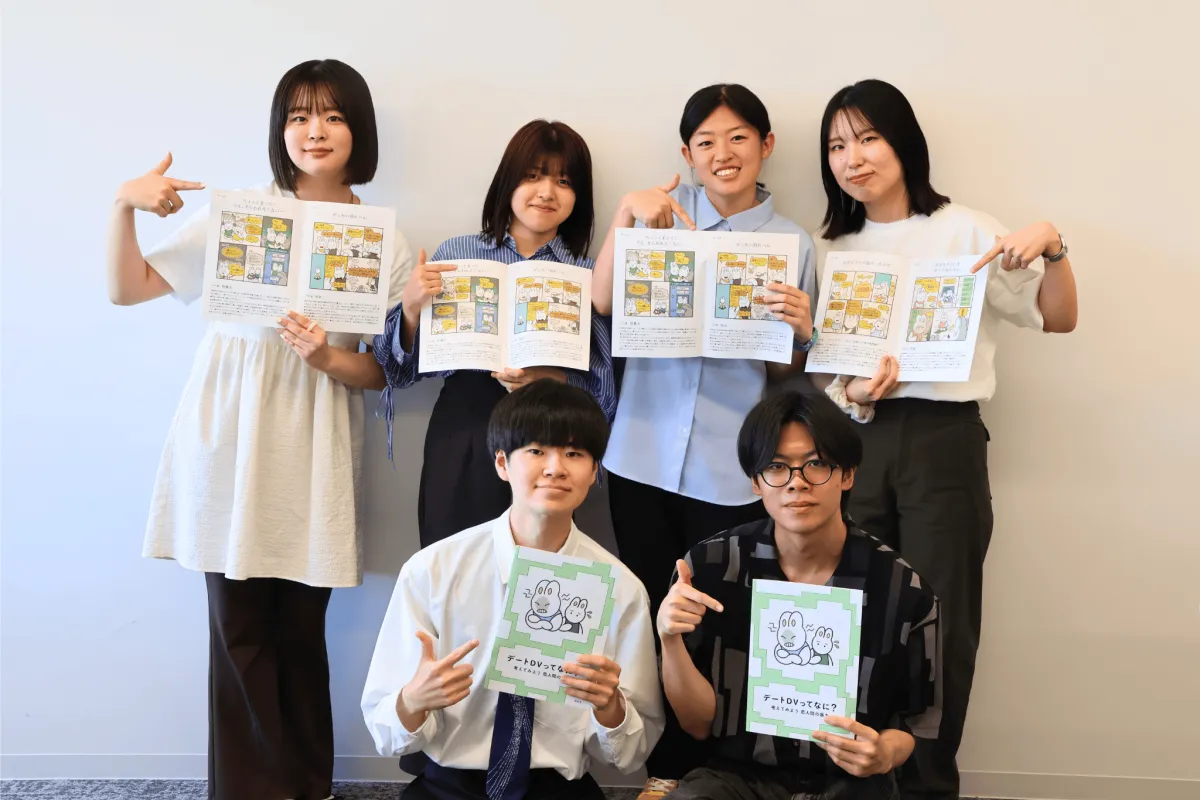 冊子には、デートDVに関する基本的な情報や、相談窓口についても触れています。特に、子どもたちが身近に感じられるように、学生たちは様々なシチュエーションを考え、細かなセリフにもこだわりました。これらはプロのイラストレーターによって漫画形式で表現され、デザインも工夫を凝らして実施されました。これにより、読者がデートDVの危険性を身近に感じ、理解を深められるようにしています。