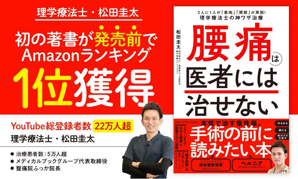 最近、YouTubeで注目を集めている理学療法士、松田圭太が初めての著書『腰痛は医者には治せない:2人に1人が「筋肉」「関節」が原因!理学療法士の神ワザ治療』を発表します。この書籍は、慢性的な腰痛や坐骨神経痛に苦しむ多くの人々に向けて、根本的な解決策を提案します。実際に発売前からAmazonの「こり・痛み」部門でランキング1位を獲得するなど、その期待の高さが伺えます。