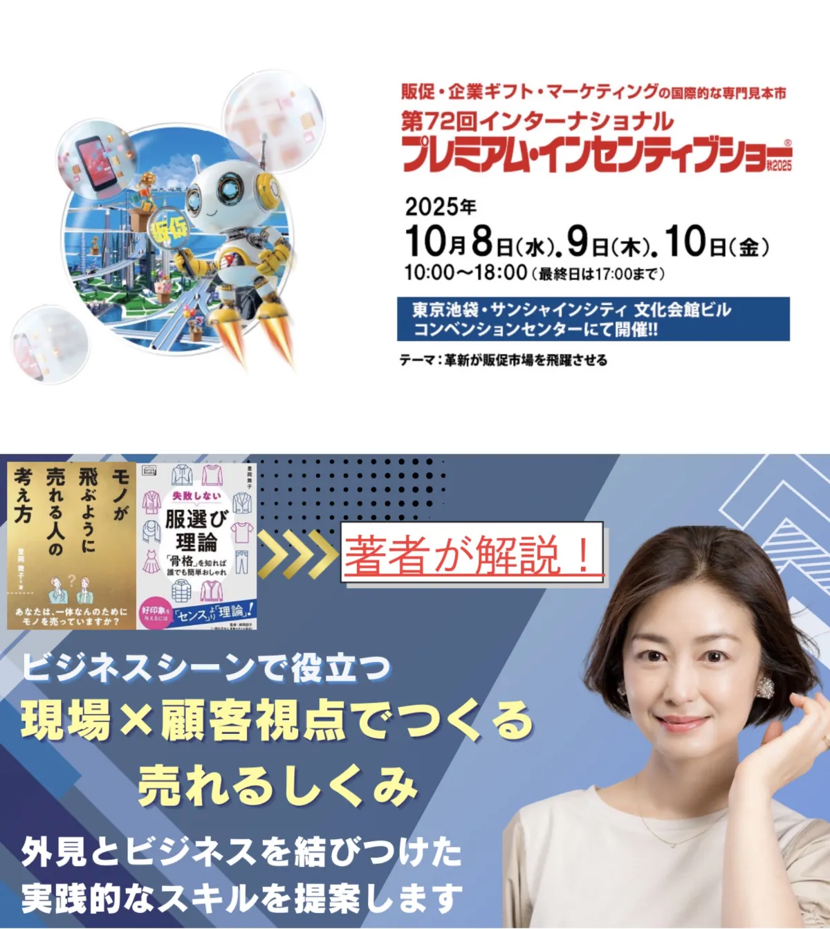 「第72回インターナショナルプレミアム・インセンティブショー秋2025」も同時開催されます。これは販促市場を革新することをテーマにした専門見本市で、ノベルティ、法人ギフト、販促支援サービス、オリジナル食品など、多岐にわたる展示内容が期待されております。セミナー以外にも、新製品コンテストやリテールプロモーションアワードなど、多彩な企画が用意されています。