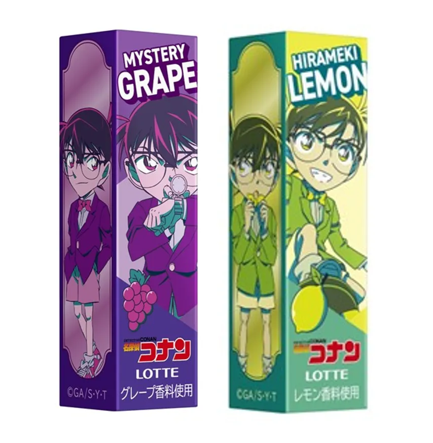 名探偵コナンガム〈ミステリーグレープ〉と名探偵コナンガム〈ひらめきレモン〉は、それぞれ味わいが異なるだけでなく、ナゾトキを通じて「名探偵コナン」の世界観を楽しめる商品です。ぜひこの新商品で、新たな味わいと挑戦を体験してみてください。