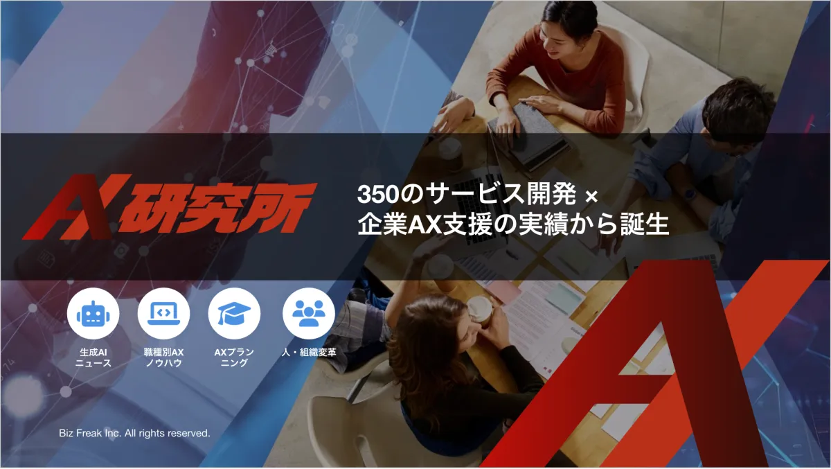 株式会社Biz Freakが全く新しい法人向けAI活用支援プラットフォーム『AX研究所』を正式にリリースしました。このプラットフォームは、企業がAI活用を進めるための情報収集から実装、組織浸透に至るまで、一貫して支援することを目的としています。特に、AIトランスフォーメーション(AX)を加速させるために設計されています。
