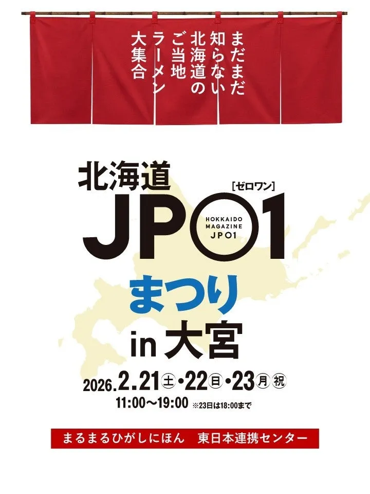さいたま市大宮区に位置する「まるまるひがしにほん」で、2024年2月21日から23日までの3日間、「JP01まつり in 大宮」が開催されます。このイベントは、東日本の魅力が詰まったご当地ラーメンが大集結する特別な祭りです。この機会に、北海道の美味しいラーメンをぜひお楽しみください!