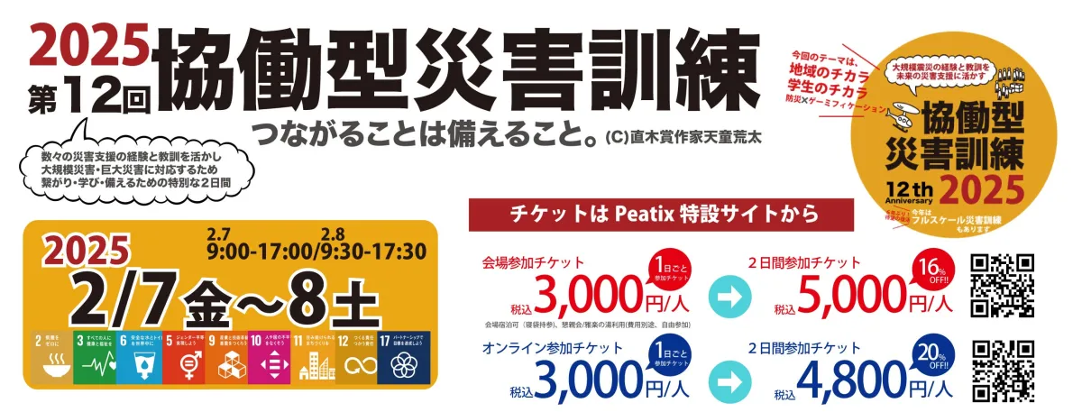 協働型災害訓練in杉戸は、参加者が防災の大切さを実感し、具体的な行動につなげることを目的としています。防災に対する意識を高める機会を提供するこのイベントには、多くの方のご参加をお待ちしています。ぜひチケットを購入し、皆さんで新しい知識と体験を得ましょう。