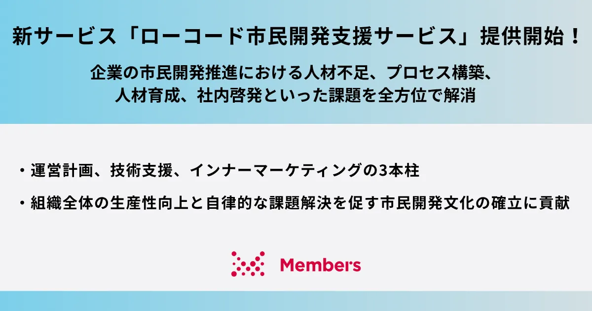 メンバーズが新たに始める「ローコード市民開発支援サービス」