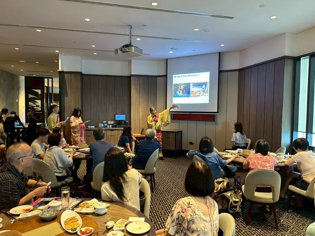 イベントの中でも、宮崎の特産物である宮崎完熟マンゴーや日本一に輝く宮崎牛の魅力が際立ちました。来場者には、映し出された完熟マンゴーの美しさや、宮崎牛のフランベの様子が視覚的に訴えかけ、興味を引くことできました。また、青島神社の魅力を紹介する際には、ミシュラングリーンガイドジャポンでの2つ星獲得の事実が大きなインパクトを与えました。特に、年に数日だけ現れる満月の夜の神秘的な青島の表情は、シンガポール市民の心に深く刻まれたことでしょう。