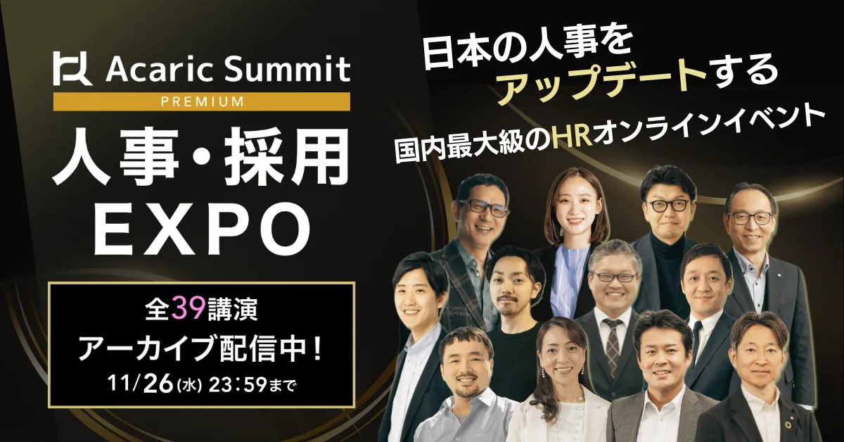 「Acaric Summit Premium」は、今後のHR分野における新たな方向性を学ぶための絶好の機会です。まだ視聴していない方は、この特別なアーカイブを利用して、最新の知識を吸収し、今後のキャリアに生かしてみてはいかがでしょうか。参加は無料ですので、ぜひ訪れてみてください。詳細は公式サイトでご確認ください。