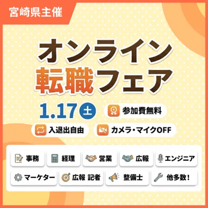 2026年1月17日(土)、宮崎県で「日本のひなたではたらこう!宮崎県オンライン転職フェア」が開催されます。このイベントは、一般求職者や転職希望者を対象にしたオンライン就職の機会で、宮崎県内の企業が30社参加し、さまざまな情報を届けてくれます。自宅にいながら、大きな可能性を秘めたキャリアの選択肢を広げるチャンスです。