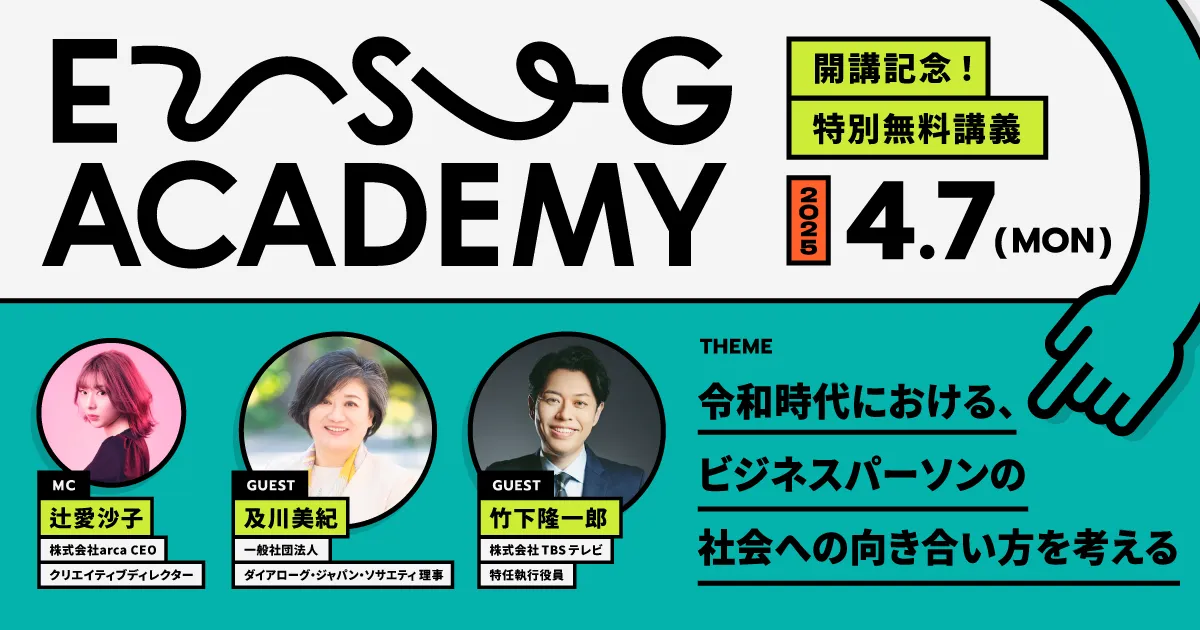 新たなビジネスシーンにおいて活躍するための知識を得るチャンスです。ESG Academyでともに学び、成長していきましょう!