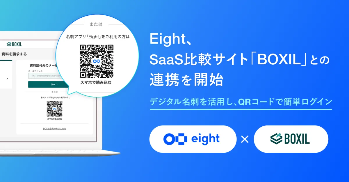 Sansan株式会社が提供する名刺アプリ「Eight」が、スマートキャンプ株式会社が運営するSaaS比較サイト「BOXIL」との連携を開始しました。この連携により、EightのユーザーはBOXILに表示されたQRコードをスマートフォンで読み取ることで、簡単にログインできる機能が追加されました。利用者は手間なくねんのために登録情報を更新でき、ビジネスの効率化が実現されています。