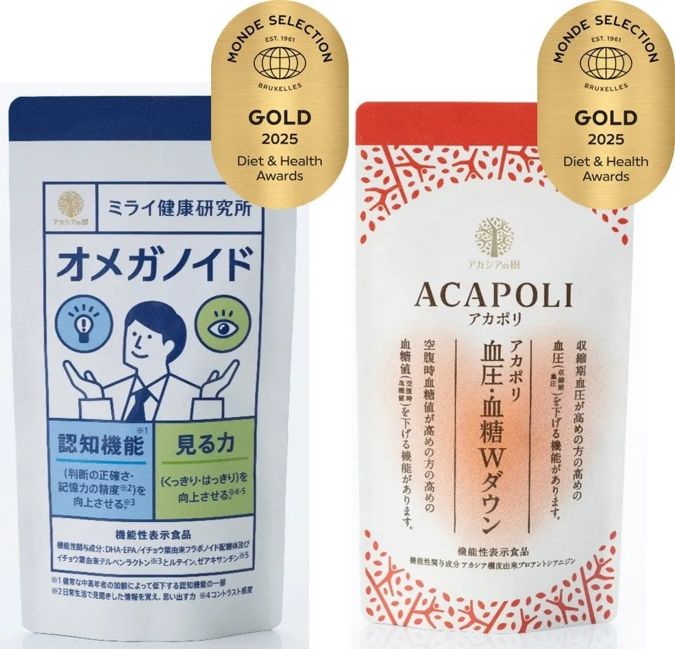 広島県廿日市市に本社を置く株式会社アカシアの樹が、国際的な食品品評会であるモンドセレクション2025において、販売する機能性表示食品『アカポリ血圧・血糖Wダウン』と『オメガノイド』が金賞を受賞するという快挙を成し遂げました。何れもその品質の高さが評価され、高めの血糖値や血圧を抑える機能性を持つことが明らかになっています。
