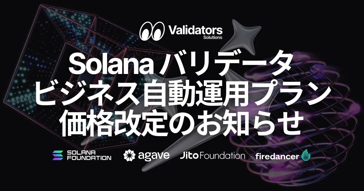 Solanaネットワークを支える「Validators Solutions」が、バリデータ自動運用サービスにおいて大規模なアップグレードと新しい価格プランを発表しました。このサービスは、バリデータ運用に関する専門的な知識がなくても参加できる環境を提供することを目的としており、より多くのユーザーが安全かつ効率的にネットワークに貢献できることを目指します。