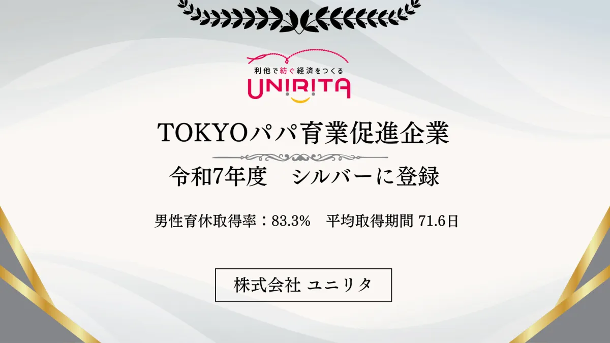 今回のシルバー認定は、男性の育児休業取得を積極的に促進する企業を評価する東京都の制度に基づいている。この政策は、男性の育児への参加を進め、家庭内での役割分担を見直す重要な取り組みともいえる。ユニリタは、社会全体の育児支援環境を整える一助を担う企業として、今後も活動を続けていくことが期待されている。