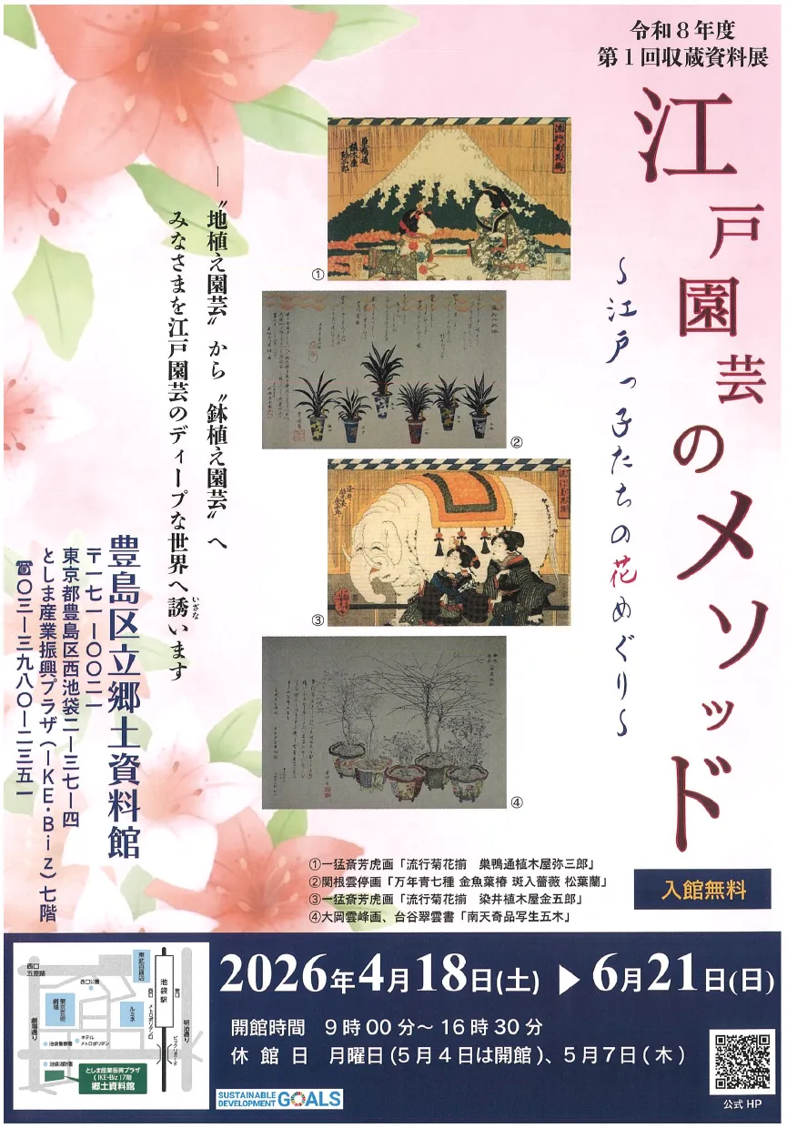 豊島区立郷土資料館では、2023年4月18日から6月21日までの期間、収蔵資料展「江戸園芸のメソッド~江戸っ子たちの花めぐり~」が開催されます。この展覧会では、江戸時代の独自の園芸文化に光を当て、その背景や技術を様々な資料を通じて紹介します。