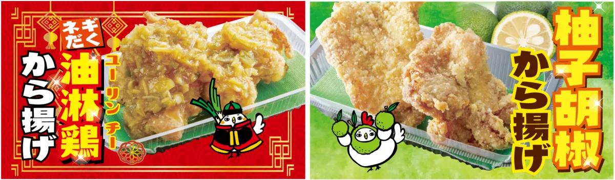 商品名:「ネギだく油淋鶏から揚げ」、「柚子胡椒から揚げ」