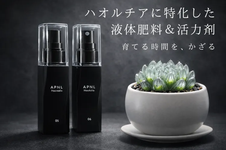 APNLは、植物に対して「与える」のではなく「整える」アプローチを採用しています。このブランドからリリースされた2つの製品は、ハオルチアの透明感と造形美を維持するための特別な設計がなされています。