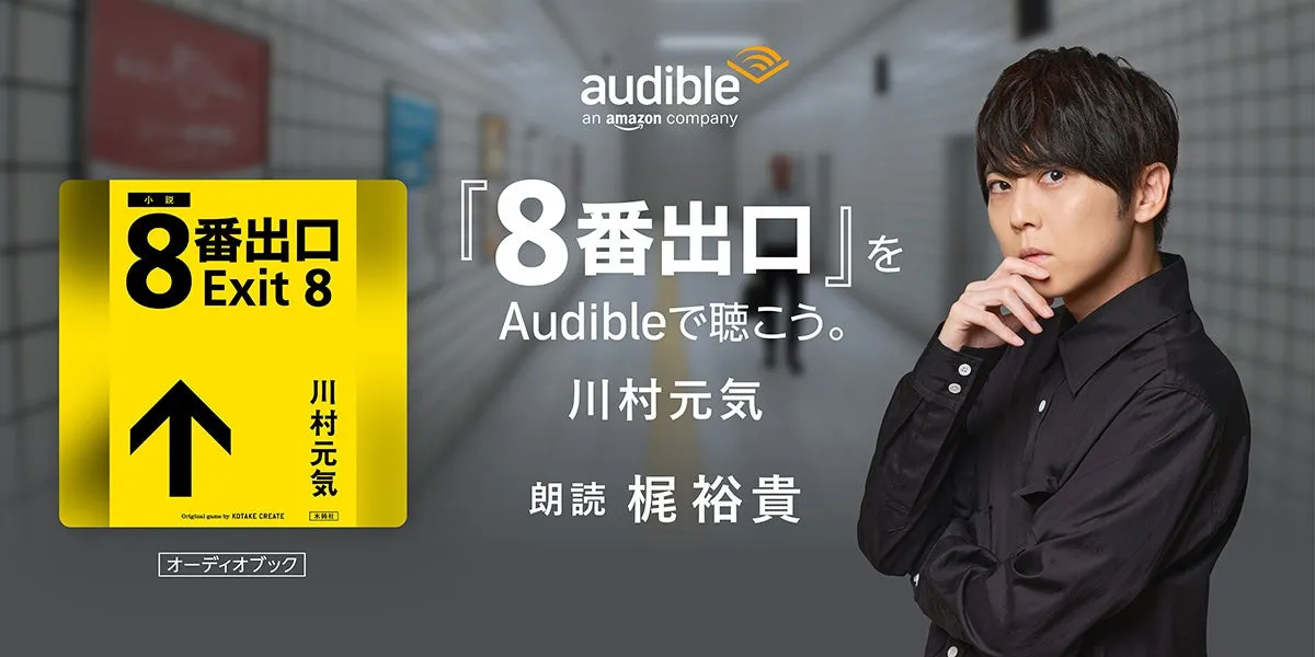 近年、無限ループゲーム「8番出口」が社会現象を巻き起こしています。このゲームが原作となる映画も公開され、さらに川村元気さん自らによって書き下ろされた小説がAudibleで朗読されています。2023年8月22日から、声優・梶裕貴さんによるこの小説の朗読が配信され、音声コンテンツとして新たな形で楽しむことができます。