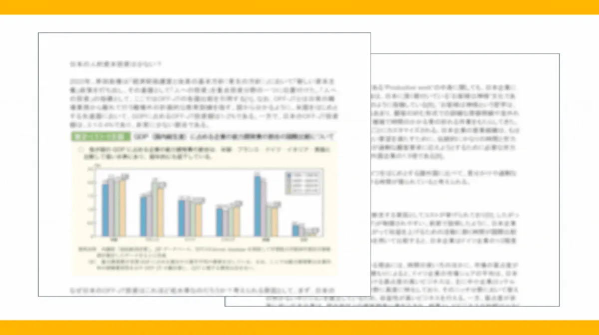近年、日本では企業の人的資本への投資が低迷しているとの指摘があります。このホワイトペーパーでは、具体的なデータとともに、業界の現状がどのようになっているのかを整理しています。研修(OFF-JT)に必要な時間を確保できない、予算の制約が厳しいといった企業の現場感覚に対して、国際的なデータを使用して背景を解析し、それが日本企業が抱える生産性の問題へどう関連しているのかを考察しています。
