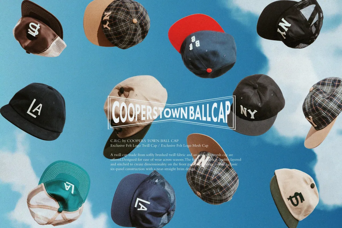 新ライン「C.B.C by COOPERSTOWN BALL CAP」は、クラシックなベースボールキャップの魅力を兼ね備えています。この新作では、毎日のコーディネートにも取り入れやすいデザインが用意されており、どんなスタイルにもフィットします。具体的には、微起毛のブラッシュドコットンツイル素材を使用したモデルと、同じ素材にメッシュを組み合わせたモデルの二種類があります。