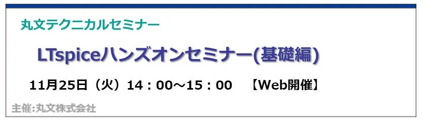 エレクトロニクス商社、丸文株式会社が11月25日(火)に開催する「LTspiceハンズオンセミナー」に関する重要なお知らせです。