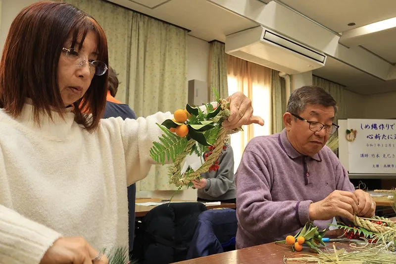 令和7年12月19日、高槻市立三箇牧公民館で行われた「しめ縄作り体験」イベントが大いに賑わいました。年神様を迎えるための重要な正月飾りであるしめ縄は、地元住民にとってなくてはならない伝統的なアイテムです。今回のイベントには約20人の参加者が集まり、年越しを楽しみにする心が漂うなか、親子や友人同士のグループで賑やかに行われました。