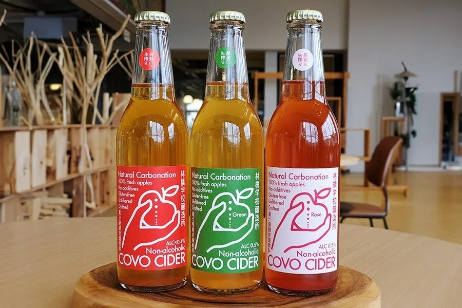 COVO CIDERは、合成香料や酸化防止剤を使用せず、シードル本来の風味を生かす製法を採用しています。日本酒の殺菌方法である瓶燗低温殺菌を取り入れ、風味や味わいを保ちながら微生物の活動を抑制しているのも印象的です。