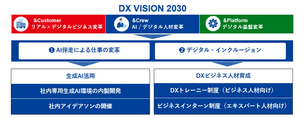 特に、生成AIの活用や、人材育成、サイバーセキュリティを含む昨今の注目テーマに触れており、株主や投資家をはじめ、様々なステークホルダーに向けて、同社のDXの取り組みをアピールしています。
