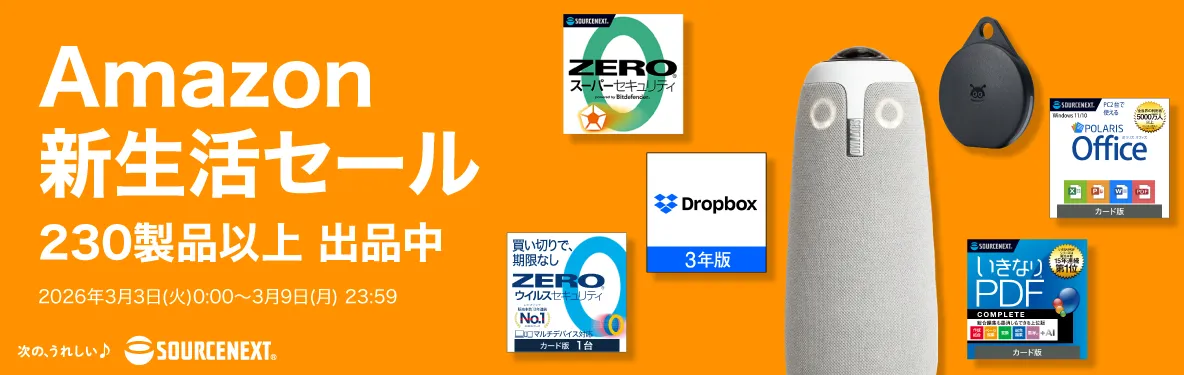 「Amazon新生活セール」は、3月3日から9日までの間に、ソースネクストの魅力的な商品を多く揃えています。先行セールは3月3日から5日まで、通常の新生活セールは3月6日から9日まで行われます。家電からセキュリティソフトまで、日常生活を便利にするアイテムが勢ぞろいします。