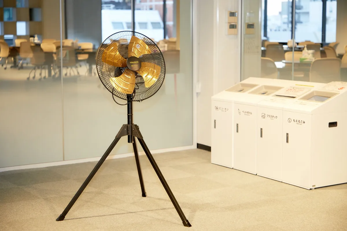 さらに、ジェネラルファンのデザインも魅力的です。従来の工場扇の印象を覆す、スタイリッシュなゴールドのアルミハネとマットブラックのボディは、どんな空間にも調和しやすいインテリアとなっています。オフィスや店舗内でも洗練された印象を与え、作業をする環境をより快適にしてくれます。