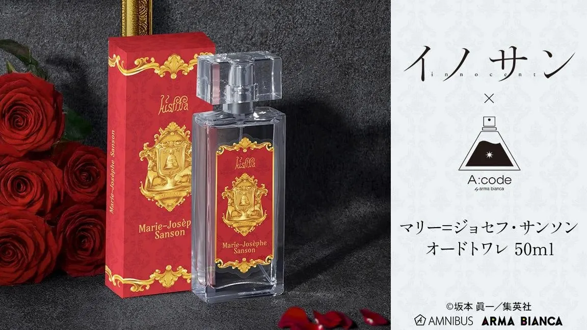 2023年4月15日より、株式会社アルマビアンカの通販サイト「AMNIBUS」にて、人気作品『イノサン』と香水ブランド「A:code」いのコラボレーションアイテムが受注開始されました。この商品は、マリー=ジョセフ・サンソンをデザインしたオードトワレで、50mlの香水を中心に、日常使いできるキャラクターグッズとしての魅力も兼ね備えています。