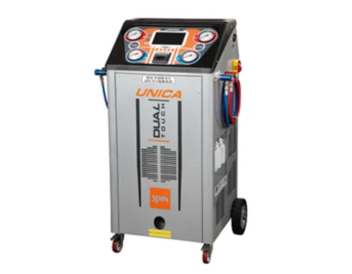 「OKクリマ ユニカ OKC-DUAL-PT」は、全自動でフロンガスの回収、再生、真空引き、再充填が行えるため、作業の効率が劇的に向上します。約20分でサービスが完結できるため、作業での時間短縮にも大いに寄与します。また、HVやEV車にも対応しており、液晶画面での操作が容易であることもポイントです。さらに、作業結果をプリンタで出力する機能や、寒冷時でも使用できるボンベーヒーターを搭載するなど、多彩な機能が盛り込まれています。