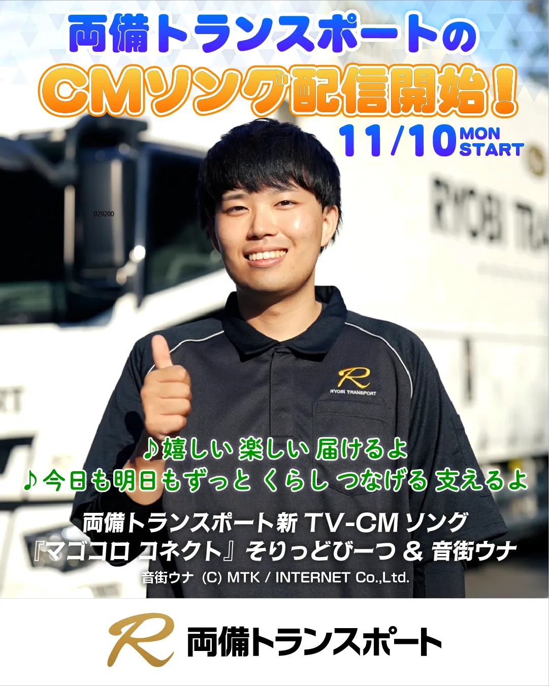 岡山県岡山市に本社を置く両備ホールディングス株式会社、そしてその物流部門である両備トランスポートカンパニーが、注目のTV-CMソング「マゴコロ コネクト」を11月10日(月)0時より、各主要音楽配信サービスで配信開始しました。作詞・作曲・編曲は人気ボカロPのそりっどびーつが手がけ、歌を担当するのは音街ウナです。