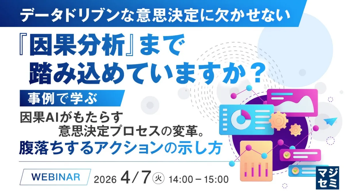 多くの企業がデータを活用しようとしている一方で、「なぜこの成果が出たのか」「どのような施策が成功につながるのか」という根本的な部分の理解が乏しい場合が少なくありません。そこで、因果分析が登場します。この手法では、相関関係を超えて本当の要因を特定することが可能です。因果関係を立証することで、施策が成果にどのように寄与しているかを明確化し、再現性のある意思決定を行う第一歩を踏み出すことができます。