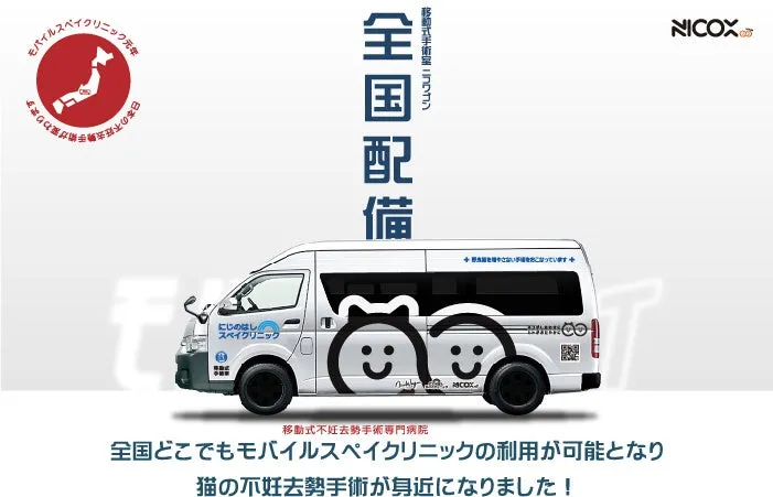 株式会社NICOXが運営する猫の不妊手術専門病院「モバイルスペイクリニック」が、画期的なプロジェクトを始動させました。なんと、全国8地方に手術車を配備し、地域に密着した出張手術サービスを提供する「モバイルスペイ」プロジェクトです。