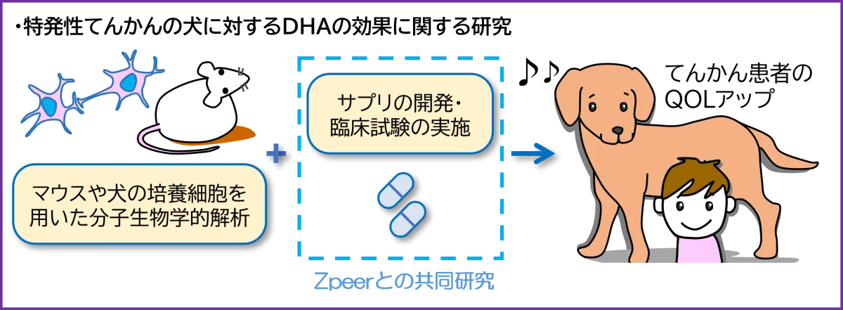 Zpeerは、東京都渋谷区に本社を構え、動物医療従事者向けのプラットフォームや動物用製品の販売を行っています。このたび、東京大学大学院農学生命科学研究科の米澤智洋准教授との共同研究が始まりました。共同研究の目的は、犬における特発性てんかんの発作頻度とドコサヘキサエン酸(DHA)摂取の関係を科学的に探ることです。