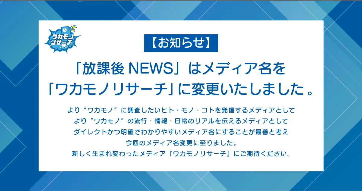 2025年9月1日より、株式会社ワカモノリサーチが運営するマーケティング情報サイト『放課後NEWS』がその名を『ワカモノリサーチ』に変更します。この新しい名称は、より若者特有の“ワカモノ”を中心にした調査や情報発信を行うことを目指しています。