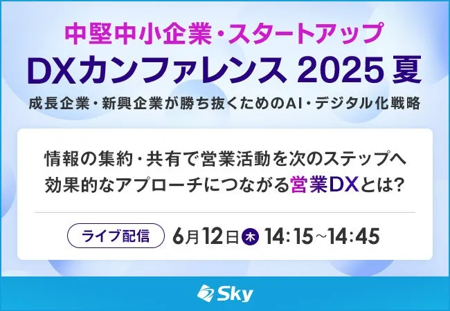 本セミナーはSBクリエイティブ株式会社の主催により開催され、リアルタイムでライブ配信されます。Sky株式会社もこの重要なイベントに協賛し、「営業活動の精度を高めるために、情報の集約・共有による営業DXは重要である」との視点から、特別な講演を行います。これにより参加者は、今後の営業活動においてどのようにデジタル技術を取り入れていくかのヒントを得ることができるでしょう。