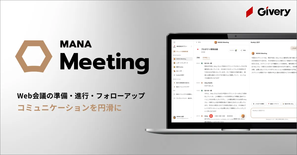 株式会社ギブリー(東京・渋谷区)は、2026年1月5日に同社の生成AI・AIエージェント活用プラットフォーム『MANA Studio』を通じて、新たなAIエージェント『MANA Meeting』の提供を開始したことを発表しました。このエージェントは、Web会議の進行を支援し、リアルタイムでの文字起こしや議事録作成を可能にします。
