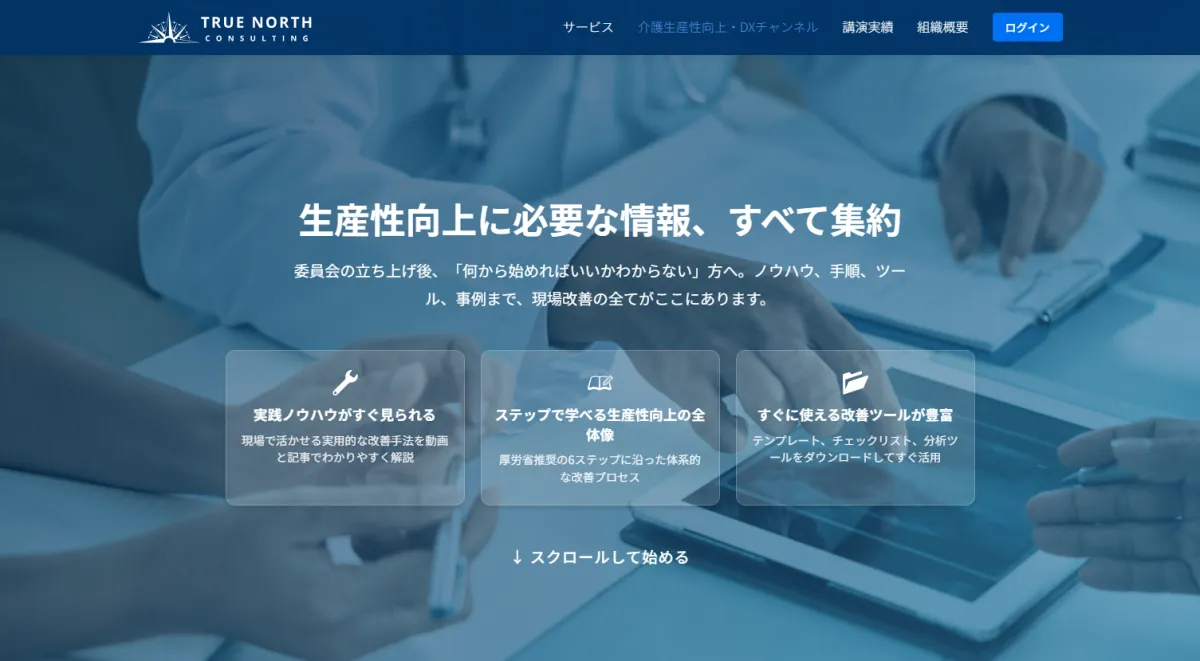 True Northは、介護事業所向けの生産性向上コンサルティングや「介護生産性向上・DXチャンネル」の運営を通じて、業界の課題解決に寄与することを目指しています。