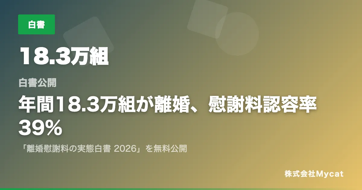 最近、株式会社Mycatが公開した「離婚慰謝料の実態白書 2026」には、日本における離婚慰謝料の現状についての重要なデータがまとめられています。この白書は、厚生労働省の「令和5年 人口動態統計」に基づき、年間に約18.3万組が離婚している現実を踏まえ、特に離婚時の慰謝料がどのように扱われているかを detailed に分析しています。