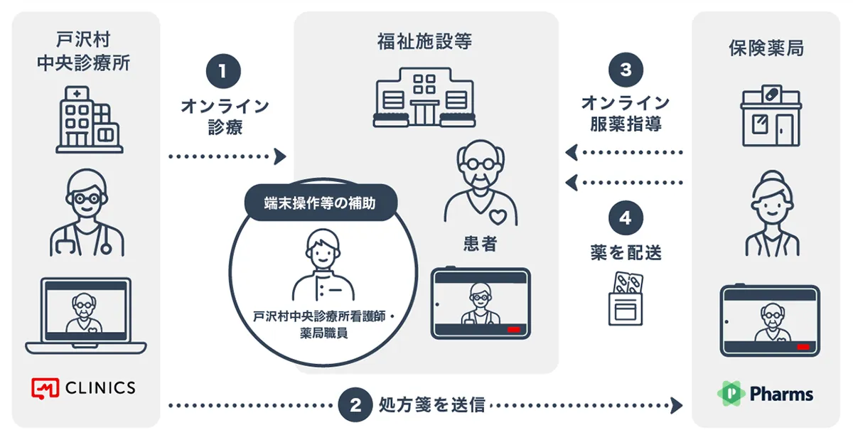 - - メドレー:医療機関向けにクラウド診療支援システム「CLINICS」を提供し、運用サポートを行います。また、薬局向けには「Pharms」システムを導入します。