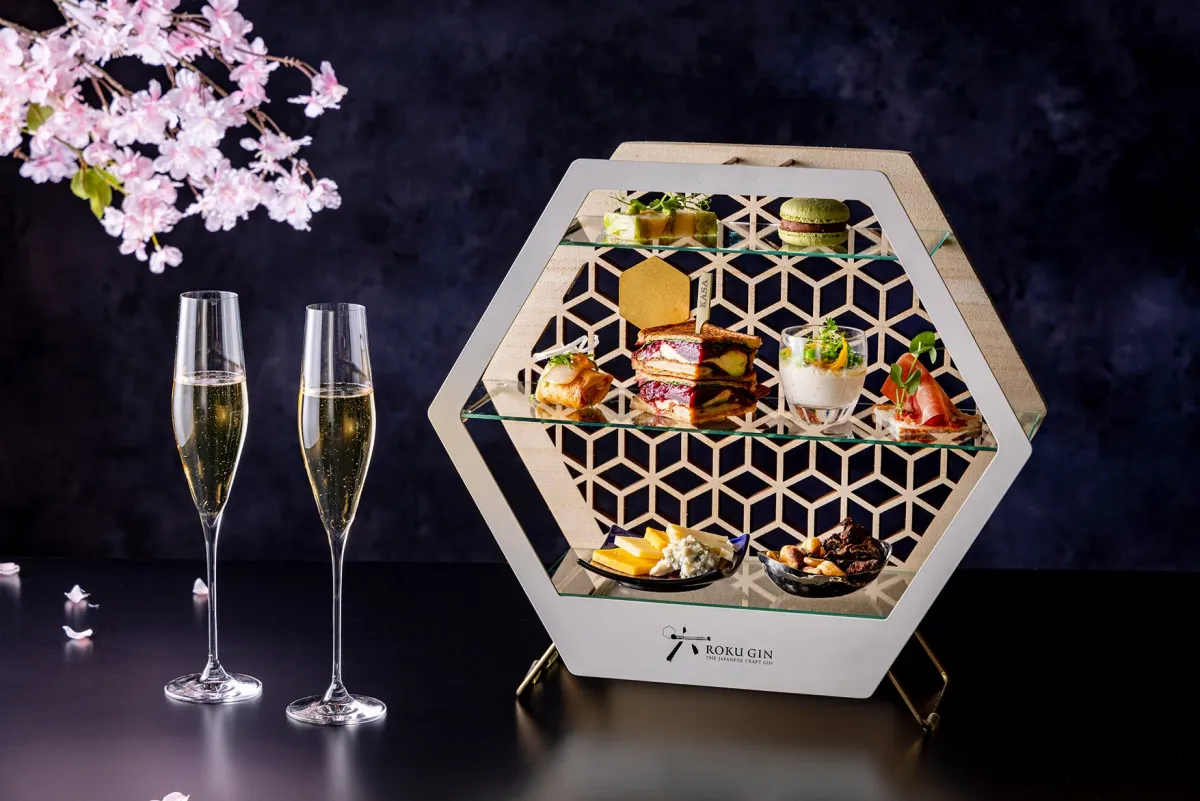 ケルト風の桜の景色を背景に、ゲストは美しい桜色のロゼワインブッフェを通じて、日本の春を体感できます。39種のドリンクが用意されており、シャンパン、クラフトジン、カクテルや、ノンアルコールの紅茶コースなど、多彩な選択肢が楽しめます。春の訪れを祝う演出として、各種のセイボリーも用意されています。これらは「甘くないアフタヌーンティー」として、洗練されたプレゼンテーションで提供され、酒との絶妙な相性が感じられます。
