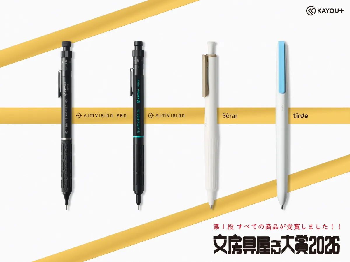 KAYOU株式会社が展開するステーショナリーブランド「KAYOU+(カーユプラス)」の第一弾商品が、全国の文房具店のプロが選ぶ『文房具屋さん大賞2026』で全4製品が同時受賞の快挙を成し遂げました。このアワードは、実際の売り場での視点から選ばれるものですので、評価されたことはKAYOU+の製品力とその設計思想が広く支持された結果と言えます。