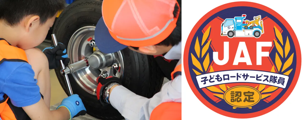 このイベントでは、子ども達が「子どもロードサービス隊員」として実際の作業に挑戦することができます。屋内ブースでは、あたかも本物の運転免許証のような「子ども安全免許証」を取得できるほか、バッテリー上がりの解消作業や、実際の工具を用いたタイヤ交換といった実践的な体験が待っています。