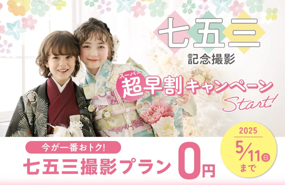 子どもの成長を記録する七五三。この特別な日の思い出を美しく残すため、愛知県春日井市に本社を構えるフォトスタジオタートルが「七五三の超早割キャンペーン」を実施します。期間は2025年4月19日(土)から2025年5月11日(日)まで。タートルでは昨年度のデータをもとに、約3組に1組が夏前に予約していることが判明しました。このキャンペーンでは、通常よりも大幅にお得な料金で撮影や着付けサービスを提供いたします。
