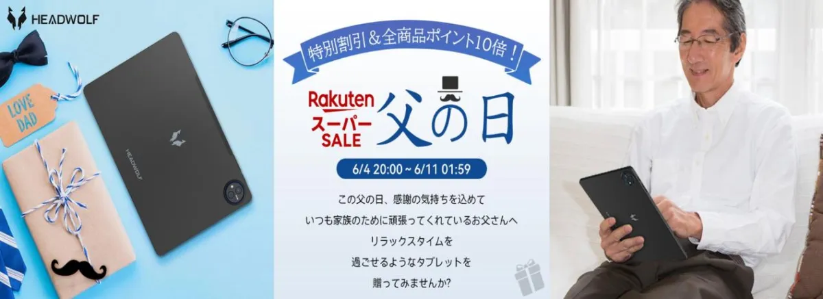 楽天スーパーSALEと連動して、父の日にぴったりのキャンペーンも開催中です。この機会に、感謝の気持ちを込めたギフトを選ぶのも良いでしょう。HEADWOLFのタブレットは、動画視聴やゲーム、さらには趣味の時間をより快適に過ごすために設計された製品です。自分用としても、また大切な人へのプレゼントとしても最適です。